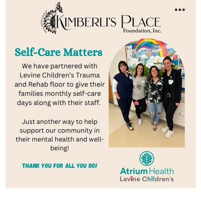 Our organization is committed to supporting our community through partnerships that plant seeds of HOPE, we provide self-care days/events monthly to support Levine Children's Hospital for their patients and families during their stay in the trauma/rehabilitation floor.